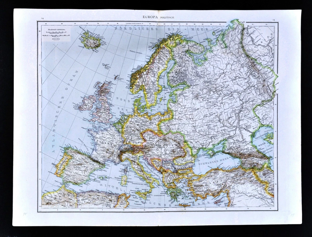 1881 Andrees Map Europe Italy France Spain Russia Sweden Greece