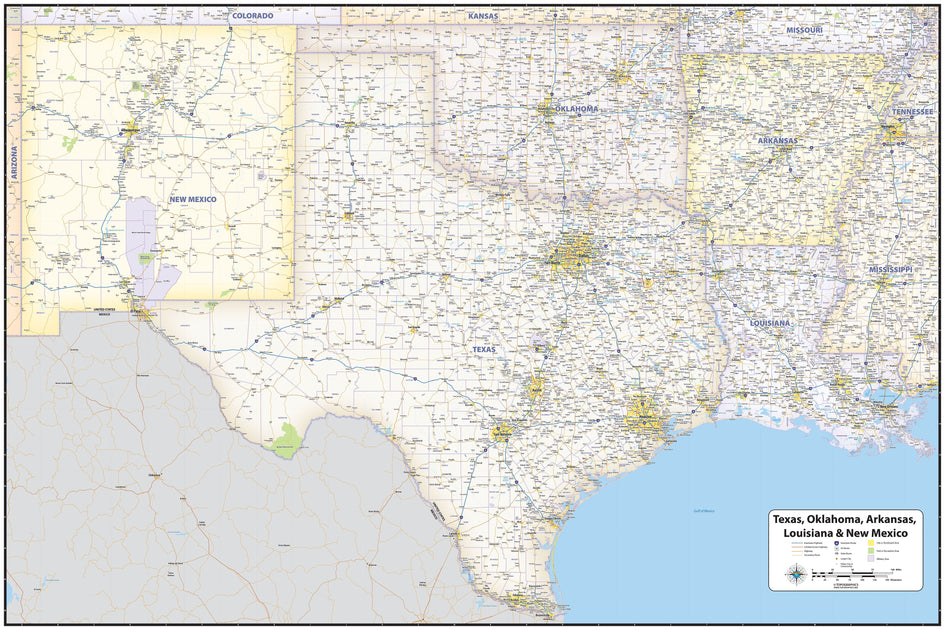 South Central Wall Map by Topograhic Maps โ American Map Store