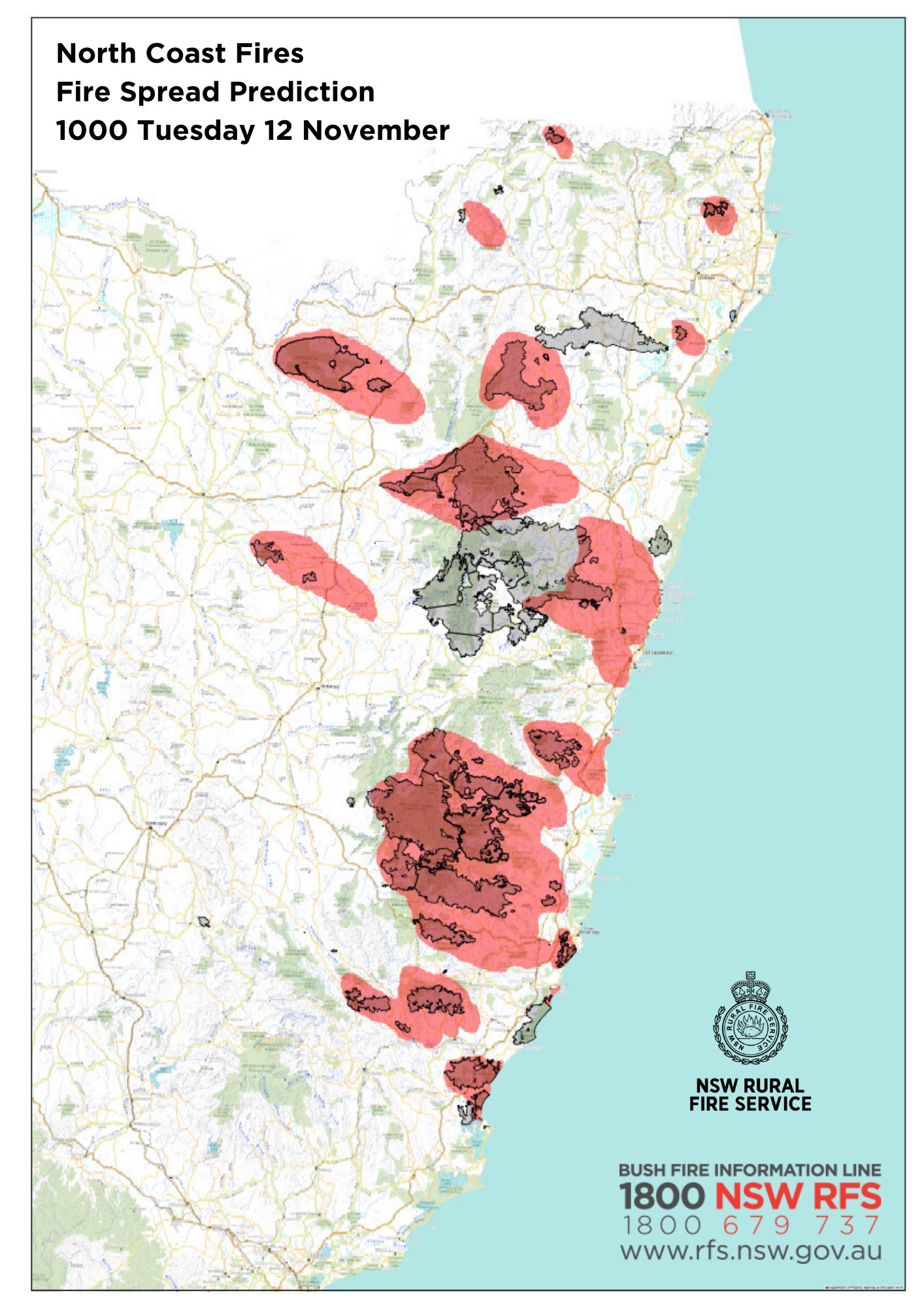 NSW RFS on X: “Latest fire prediction map for north coast fires