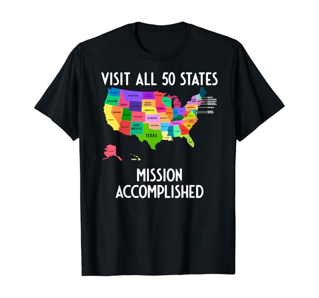 Amazon.com: Visit all 50 states map shirt USA travel gift T Shirt