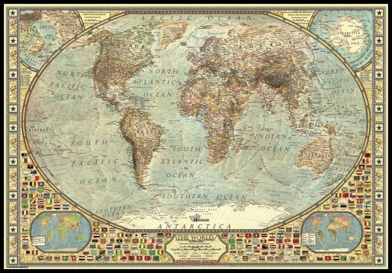 Antique World Political Map Large Size Locked PDF Format : XYZ